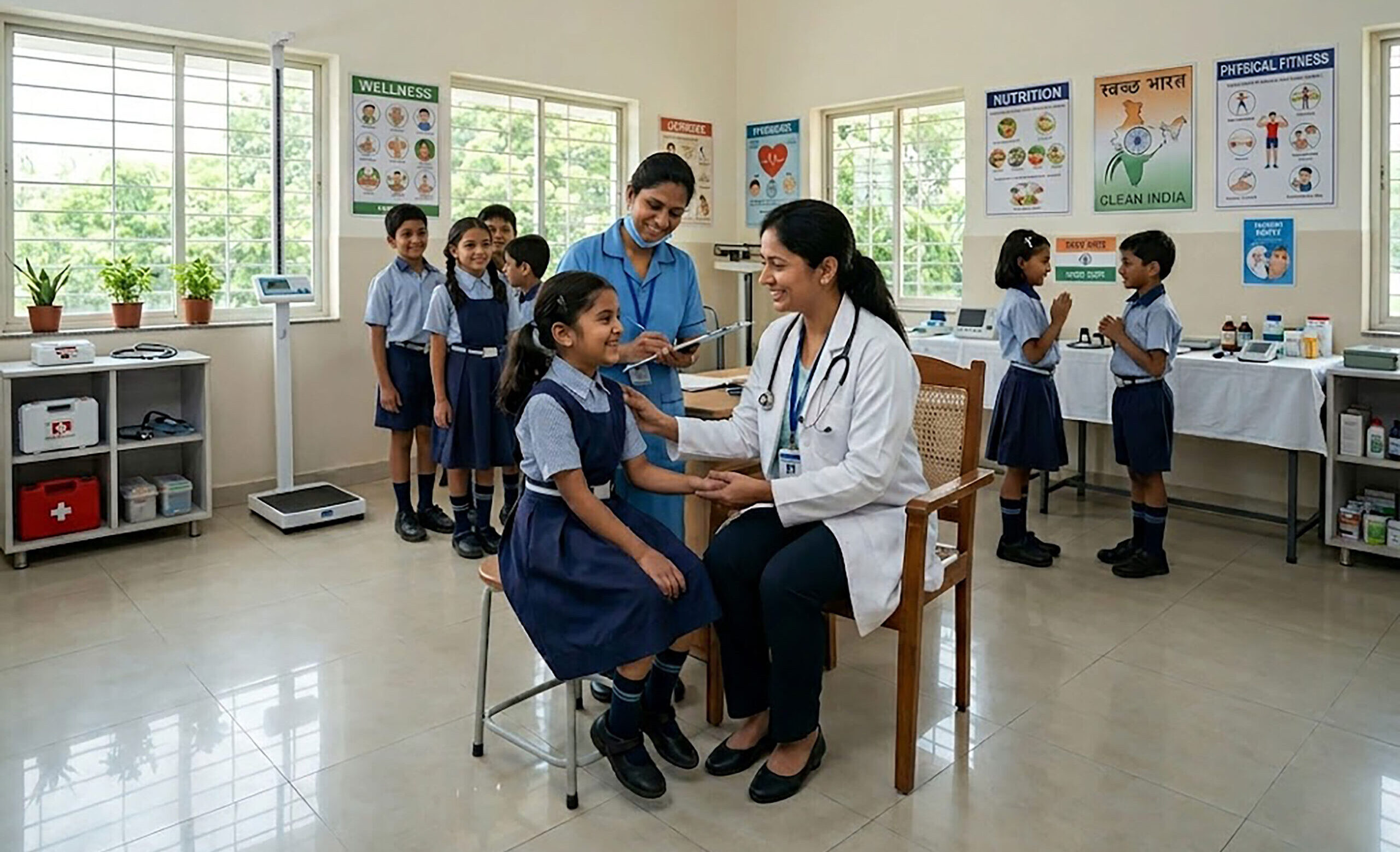 School healthcare programs providing screenings, wellness guidance, preventive care..